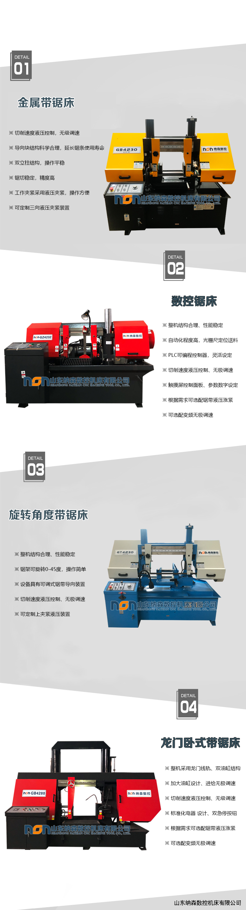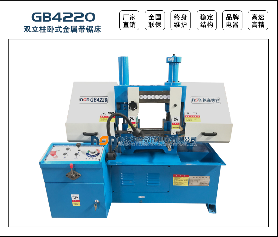 GB4220臥式帶鋸床是集機(jī)、電、液為一體的帶鋸床,是鋸切較大直徑的黑色金屬和有色金屬等各種型材的設(shè)備,具有高效、節(jié)能、高精度等特點(diǎn)。其結(jié)構(gòu)合理,造型美觀、操作方便,是大中小型企業(yè)采購的理想帶鋸床。