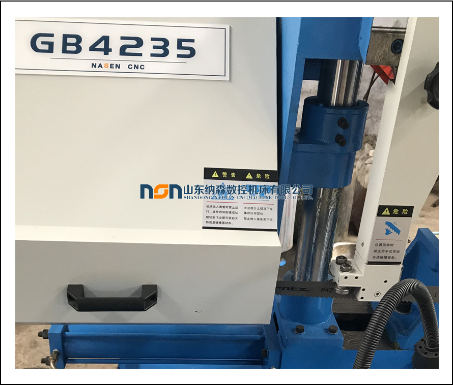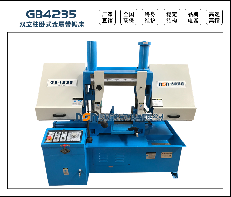 GB4235臥式帶鋸床主要用于鋸割碳素結(jié)構(gòu)鋼、低合金鋼、高合金剛、特殊合金鋼和不銹鋼、耐酸鋼等各種金屬材料,雙立柱臥式金屬帶鋸床主要部件有:底坐;床身、立柱;鋸梁和傳動(dòng)機(jī)構(gòu);導(dǎo)向裝置;工件夾緊;張緊裝置;送料架;液壓傳動(dòng)系統(tǒng);電氣控制系統(tǒng);潤(rùn)滑及冷卻系統(tǒng)。