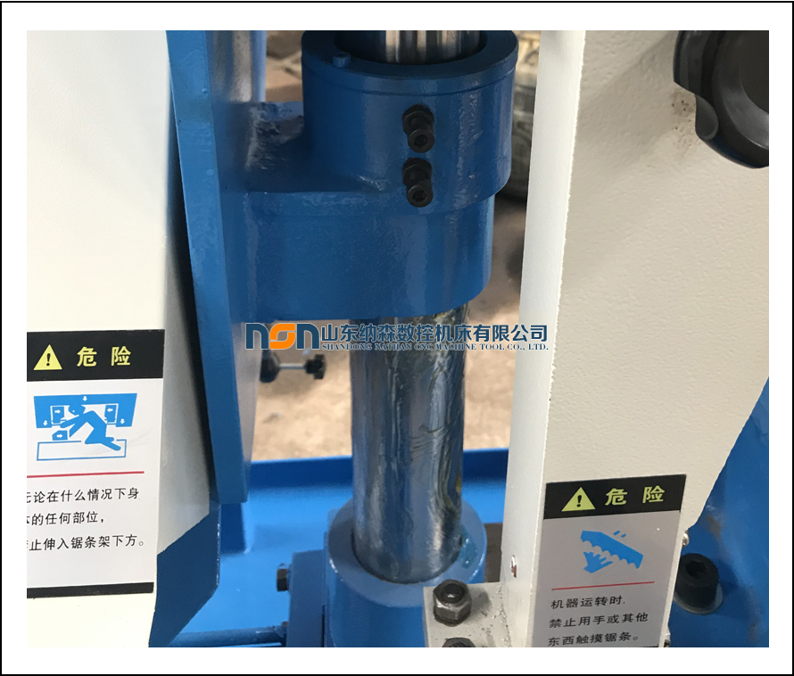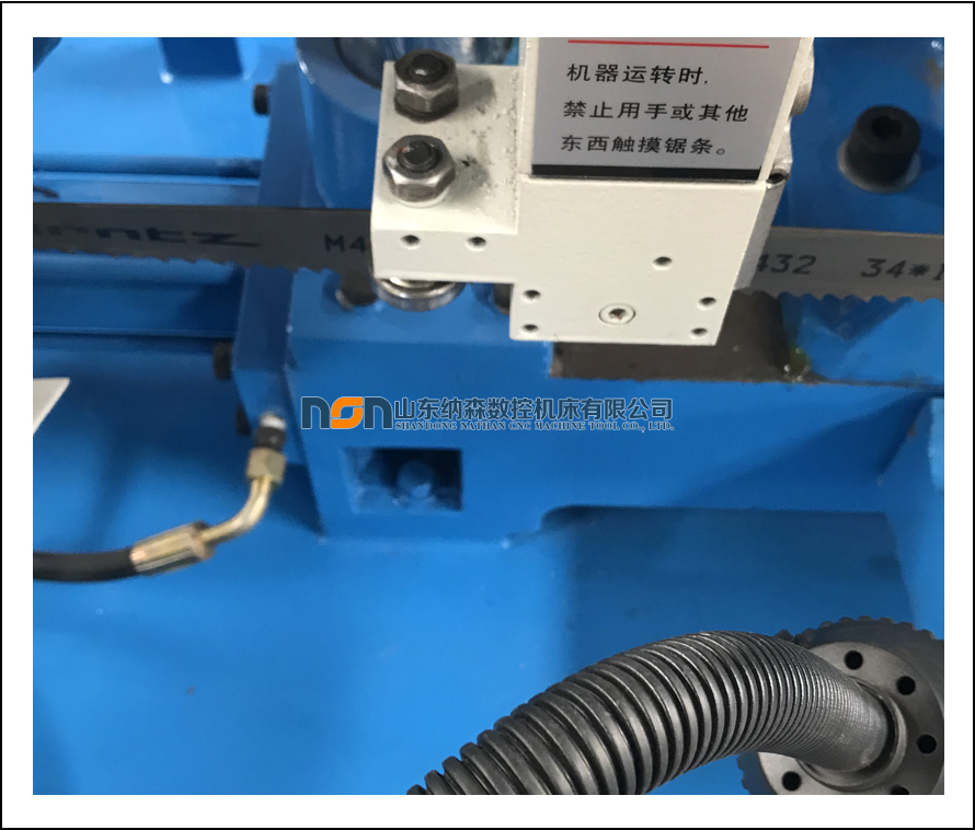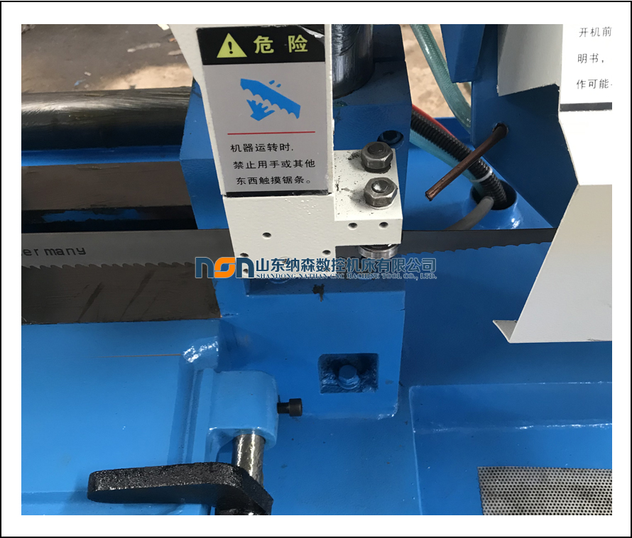 電氣控制系統(tǒng)由電氣箱、控制箱、接線盒、行程開(kāi)關(guān)、電磁鐵等組成的控制回路,用來(lái)控制鋸條的回轉(zhuǎn)、鋸梁的升降、工件的夾緊等,使之按一定的工作程序來(lái)實(shí)現(xiàn)正常切削循環(huán)。