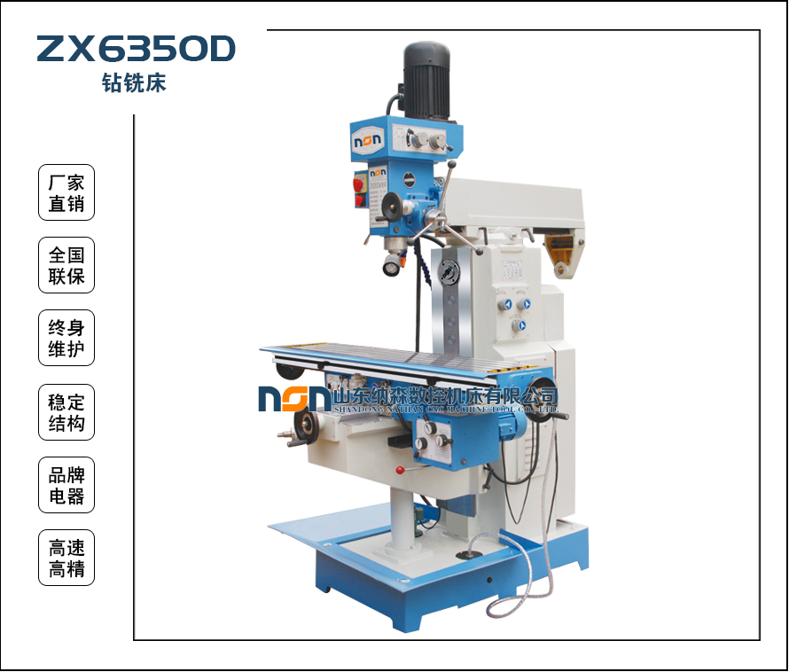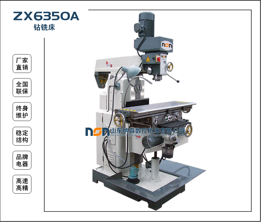 ZX6350鉆銑床為方形箱體的多功能鉆銑床,立銑及臥銑均為齒輪傳動(dòng),扭矩傳遞好,加工效率高裝有機(jī)械進(jìn)給器,可實(shí)現(xiàn)工作臺(tái)縱向自動(dòng)進(jìn)給,減少了勞動(dòng)強(qiáng)度,提高了加工精度和表面光潔度.床身導(dǎo)軌淬火處理,有良好的耐磨能力.銑頭安裝于滑臂前端,可前后移動(dòng),不僅能在垂直平面內(nèi)左右回轉(zhuǎn)45度,又可在床身上回轉(zhuǎn)360度,具有良好的加工萬向性。