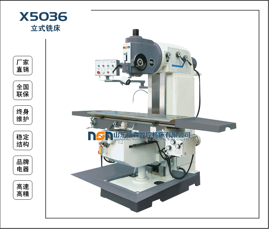 X5036立式銑床是一種通用金屬切削機床。本銑床的主軸錐孔可直接或通過附件安裝各種圓柱銑刀、成型銑刀、端面銑刀、角度銑刀等刀具,適用于加工各種零部件的平面、斜面、溝槽、孔等,是機械制造、模具、儀器、儀表、汽車、摩托車等行業(yè)的理想加工設(shè)備。