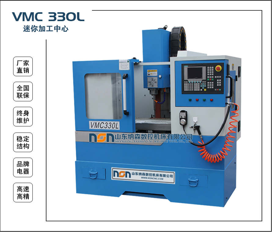 VMC330L迷你加工中心為X、Y、Z三軸伺服直聯(lián)控制半閉環(huán)立式加工中心,三軸均為鋼球滾動直線導(dǎo)軌,導(dǎo)軌負(fù)載大、跨距寬、精度高,XY向為20MM直線導(dǎo)軌,Z向為25MM直線導(dǎo)軌,結(jié)構(gòu)及外形尺寸緊湊合理,主軸為伺服電機通過同步帶驅(qū)動,能夠?qū)崿F(xiàn)對各種盤類、板類、殼體、凸輪、模具等復(fù)雜零件一次裝夾,可完成鉆、銑、鏜、擴、鉸、剛性攻絲等多種工序加工,適合于多品種、中小批量產(chǎn)品的生產(chǎn),能滿足對復(fù)雜、高精度零件的加工??膳涞谒男D(zhuǎn)軸,以滿足特殊零件的加工要求。
