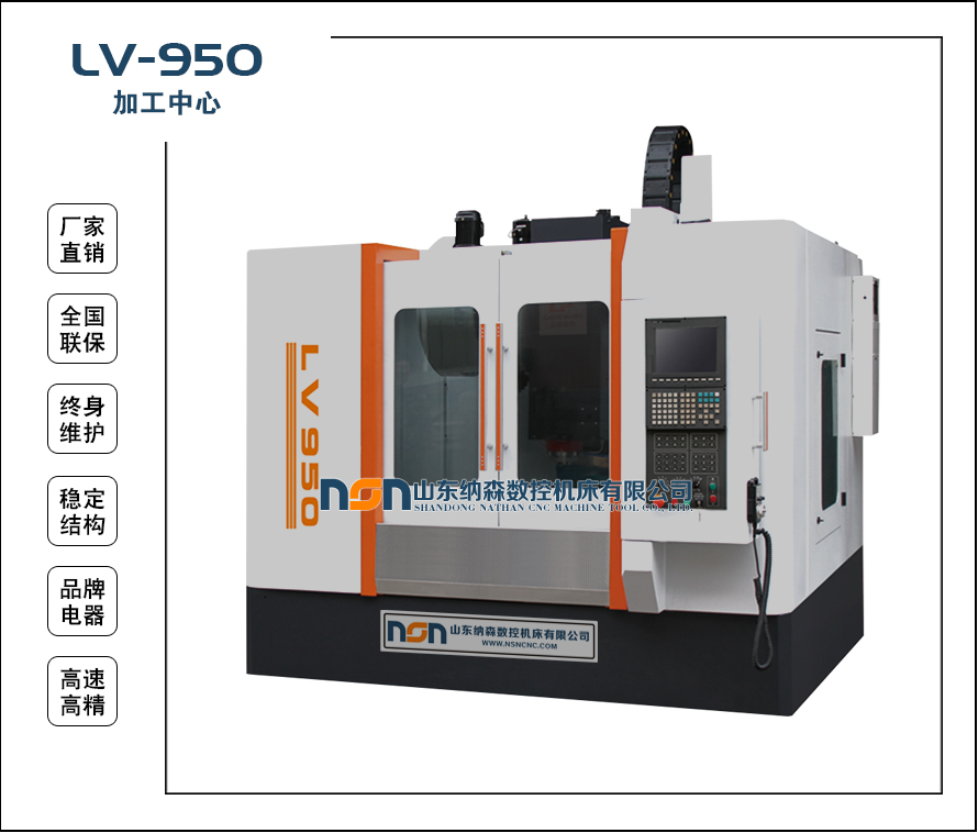 LV-950立式加工中心進(jìn)給軸為X、Y、Z三座標(biāo)控制,主軸為伺服電機(jī)動(dòng)力驅(qū)動(dòng),刀庫(kù)容量16或24把可選。能夠?qū)崿F(xiàn)對(duì)各種盤類、板類、殼體、凸輪、模具等復(fù)雜零件一次裝夾,完成鉆、銑、鏜、擴(kuò)、鉸、攻絲等多種工序加工,適合于多品種、中小批量產(chǎn)品的生產(chǎn),對(duì)復(fù)雜、高精度零件的加工更能顯示其優(yōu)越性。